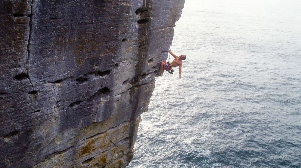 This is a climb that has water below as a “safety net” should the climber fall. If you were to fall, the water would take most of the damage.